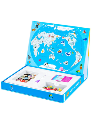 The Magnetic World Explorer Kit is a beautifully designed educational playset that combines puzzle-solving, magnetic matching, and creative play into one compact kit. Kids can place magnetic country shapes on the world map, match animals to regions, or flip through fact cards to discover interesting trivia about each part of the globe.