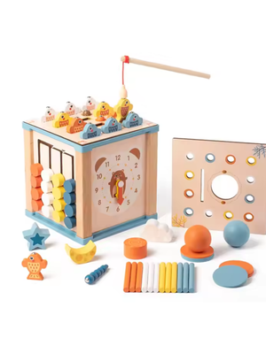 The Montessori Activity Cube is an all-in-one wooden learning toy designed to spark curiosity and skill-building in toddlers. With fishing games, shape sorting, color matching, abacus play, and even a mini clock, it turns everyday play into a rich educational experience. Crafted for children aged 1 and above, this beautifully finished cube promotes hands-on learning while keeping little minds and hands happily engaged.