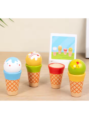 Ice Cream Stackers – Turn playtime into a delicious challenge! This delightful wooden toy set encourages kids to match, stack, and build colorful ice cream cones while developing key early learning skills.