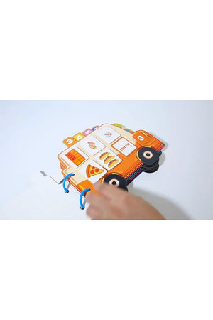 - Expands vocabulary around vehicles, foods, colors, and shapes