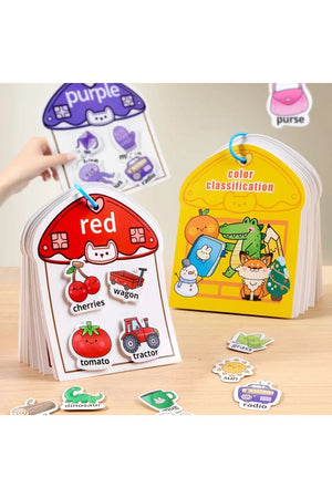 - Interactive busy book with color sorting and matching activities